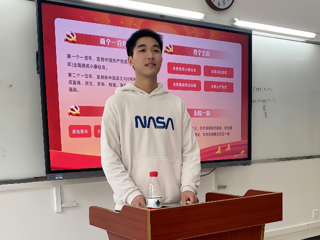 习近平总书记强调:“青年理想远大、信念坚定,是一个国家、一个民族无坚不摧的前进动力。”作为一名中共党员,他时刻牢记要持续自身先进性,并且在各个方面都严格要求自己,在思想行动上为同学们树立一个良好的榜样,虚心求教,接受同学们的监督;他时刻秉承“全心全意为人民服务”的宗旨,积极为班级同学服务。