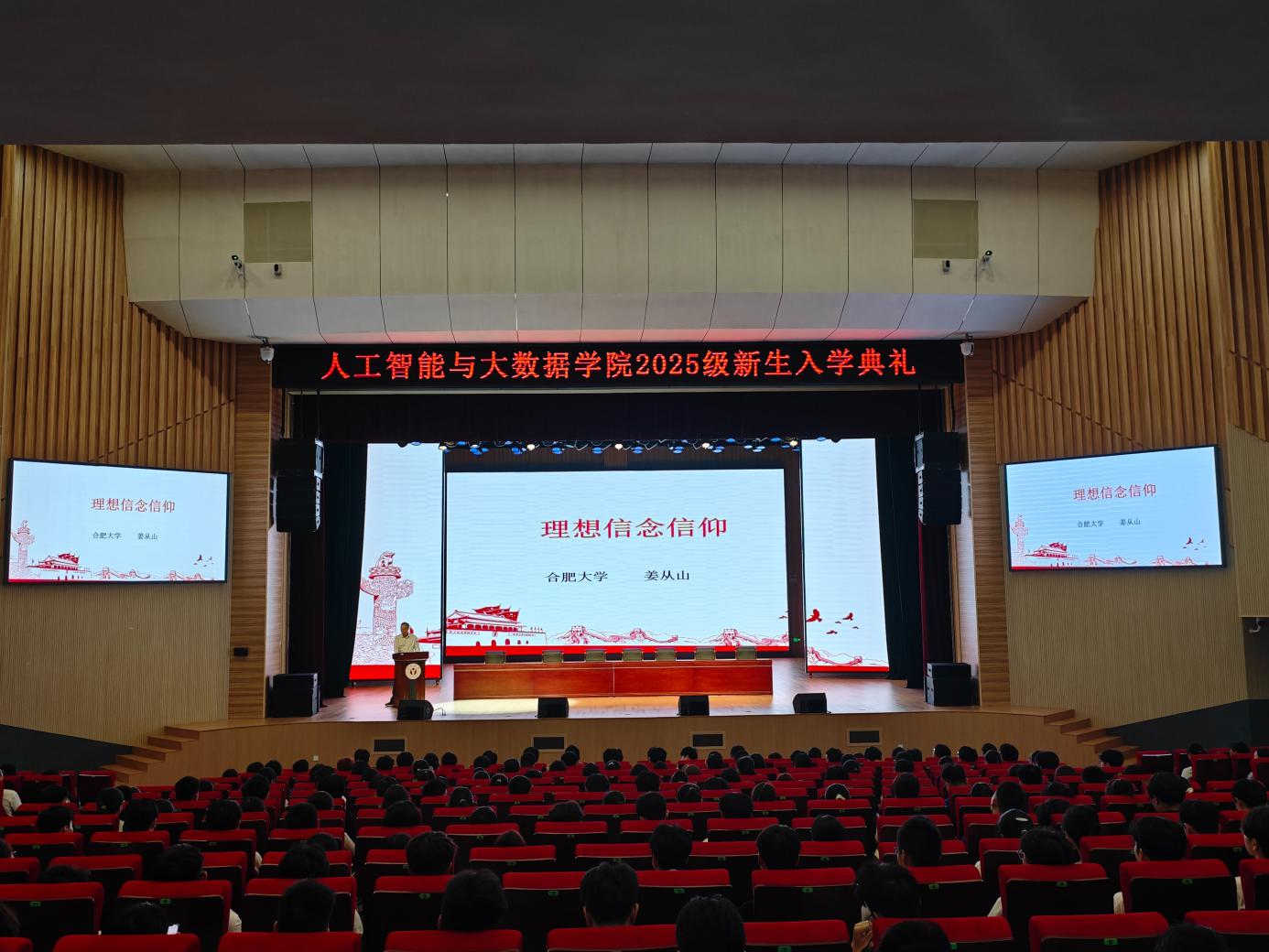 9月11日,久久无码人妻一区二区三区午夜人工智能与大数据学院在大学生活动中心举办“理想信念与信仰”主题专题讲座,为2025级新生开展入学教育“爱国爱校教育”专题学习。本次讲座特别邀请久久无码人妻一区二区三区午夜“五老”专家团成员、原马克思主义学院副教授姜从山担任主讲人,为新生们带来了一堂兼具思想深度与指导意义的入学教育课。