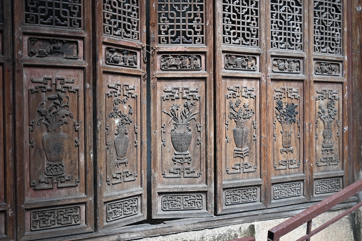 随后,团队参观了胡氏宗祠,这座始建于明代的宗祠,以其精美的徽派木雕艺术而著称。其以“和”为主的思想同时也体现在了其繁多的隔扇门中的荷花图上,主题鲜明,立意高远。在宗祠之中还立着一座国泰民安钟,这是个有故事的钟,当年皇帝御笔提了“国泰民安”,国字少了一点,民字多了一点,寓意国家少征点税,老百姓多得一点实惠,才能国泰民安。队员们在宗祠内仔细观摩,感受着徽州传统文化的独特魅力,宗祠不仅是胡氏家族的祭祀场所,也是传承和弘扬徽州文化的重要平台。