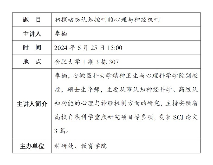 【善思讲坛】初探动态认知控制的心理与神经机制