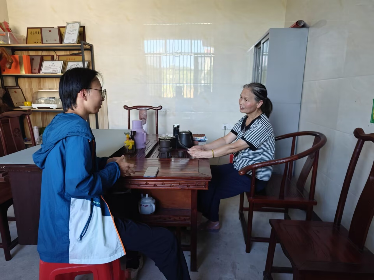 ▲图为团队成员采访高山何飞茶厂老板万瑞芬