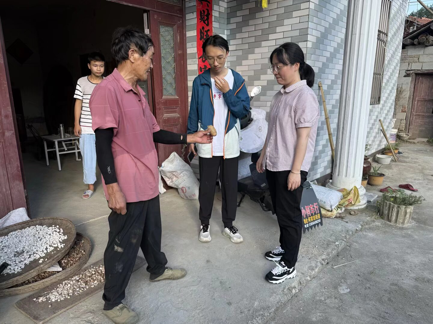 沿着蜿蜒山路,团队来到太平畈特色中药材种植基地。老板何海青作为霍山传统中药材加工的“老手艺人”,他的工坊里弥漫着天麻、茯苓、黄精的清香,竹匾与竹筛层层叠叠铺满了晾晒的药材。“现在不少人办厂就盯着眼前赚快钱,可中药材讲究‘道地性’,急不得。”何老板一手拿着药材,一边讲述自己的坚持。他将父辈的传统工坊拓展规模,却仍保留着最“笨拙”的传统工序,拒绝用硫磺熏制加快干燥,宁愿多花时间自然晾晒,成本增加却保住了药材的药效。“刚开始利润少,但口碑做起来了,现在老客户主动加价买‘无硫干货’。”基地虽规模不大,却凭借“慢工出细活”的匠心,在当地小有名气。“创业就像种药材,根扎得深,后期才能长得旺。只顾眼前那点利,迟早砸了招牌。” 面对大学生返乡创业的建议,何老板希望大家不止局限于课本,要去实践,要坚持不懈,不怕吃苦,跟着老一辈的人的步伐,从他们那里得到经验。他的话里,藏着乡土创业者最朴素的商业智慧。