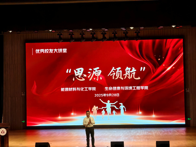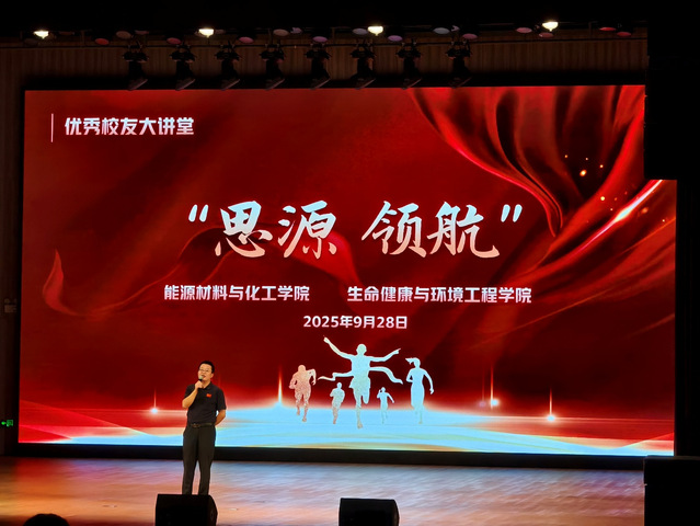 9月28日14:30能化学院和生环学院主办的以“思源 领航”为主题的优秀校友大讲堂活动在大学生活动中心的报告厅隆重举行。本次交流会特邀了两位在不同领域卓有建树的杰出校友——生环学院2010届生物工程专业的吴培与能化学院2009届粉体材料科学与工程专业的张海喜重返母校,与在校师生分享他们的奋斗历程与人生感悟。现场气氛热烈,思想的火花在此碰撞,梦想的航向在此明晰。