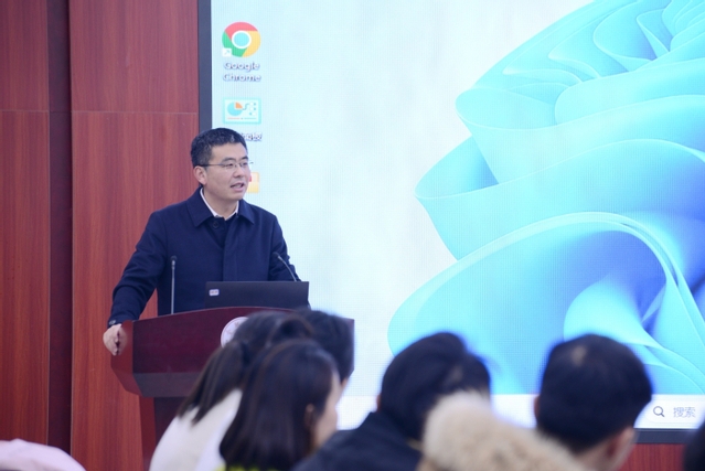 12月27日,由科研处和人工智能与大数据学院联合主办的“随机微分方程与随机分析”学术报告会在大学生活动中心一楼会议室举办。天津大学王凤雨教授、邵井海教授,山东大学陈增敬教授,以及中国科学技术大学张土生教授来校作专题讲座,我校数学学科团队的师生们到场聆听。报告会由党委副书记、校长任永主持。