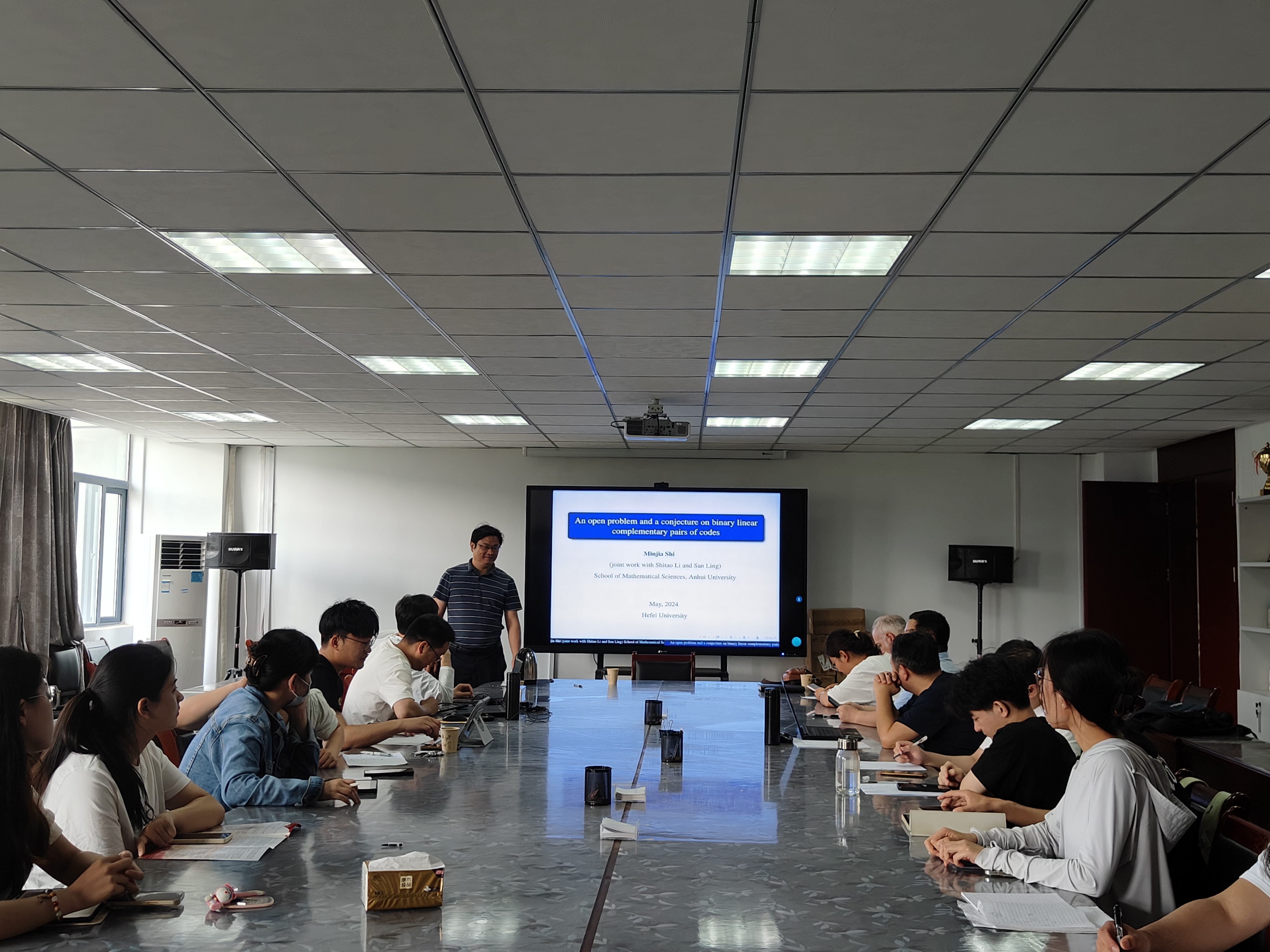 2024年5月24日下午,由科研处和人工智能与大数据学院主办的题为“二元线性互补对码的一个公开问题和一个猜想”的学术报告在36号楼305会议室举行。人工智能与大数据学院青年教师及数学研究生共24人参加。此次报告由余海峰教授主持。