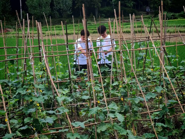 6月29日上午,调研团的成员们在新唐村蔬菜基地参观当地特色富硒农作物,深入了解当地特色富硒农作物的生长过程和生长状态,从根源了解生物的生长发育模式。