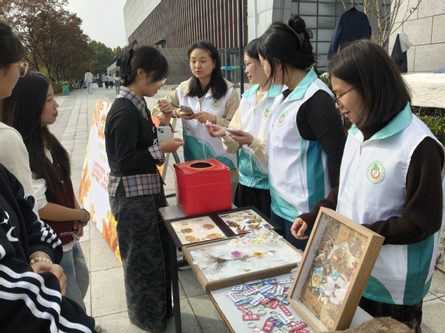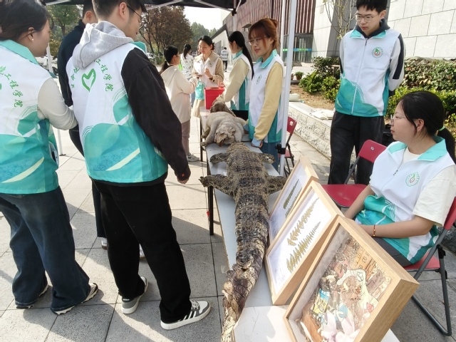 活动现场,一面正在不断“生长”的“叶脉舒心”留言墙成为最大亮点。组织方别出心裁地以天然树叶替代便签纸,邀请同学们执笔,将无人倾诉的烦恼、瞬间的感动或未来的寄语书写其上。五彩的树叶很快贴满了展板,构成一幅承载着集体情绪的温暖画卷。这片小小的留言墙,以其独特的自然柔软之力,成功为同学们开辟了一个安心、匿名的情绪栖息地。毗邻的“健康知识问答”区则充满了思维的碰撞与欢声笑语,活动将“饮食缓解疲劳”、“外卖健康选择”等日常困惑转化为一道道趣味题目,吸引了众多同学挑战。通过回答“哪种污染物会通过食物链影响健康”等问题,抽象的健康知识化为具体的行动指南。答对者不仅能收获小礼品,更收获了赋能日常生活的科学理念,让健康不再是一句空洞的口号。动植物标本展示区,同样人流如织。讲解员立足标本,深入浅出地介绍相关学科在生命健康和环境保护中的前沿应用,引发了同学们的浓厚兴趣与热烈讨论。