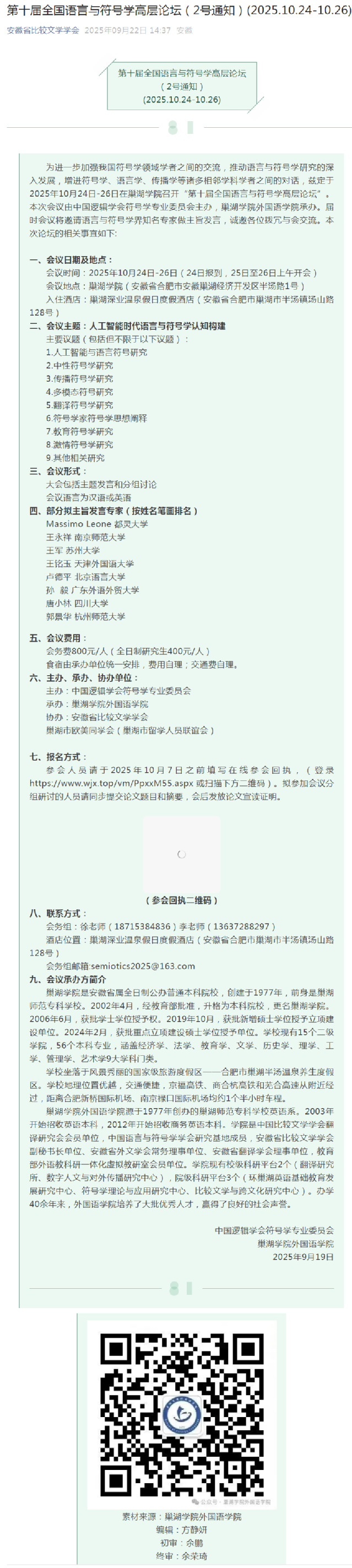 第十届全国语言与符号学高层论坛(2号通知)(2025.10.24-10.26)