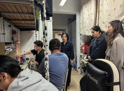 检查过程中,老师们就发现的问题现场沟通指导,对少数存在物品堆放杂乱、卫生清理不及时的宿舍,明确提出整改要求与完成时限,提醒大家做好个人卫生防护,提升自我防范与管理意识。对于走访的毕业班宿舍,夏书记主动与毕业生沟通就业进展,询问学生求职方向、面试安排及遇到的困惑,鼓励大家积极参与校园招聘会。