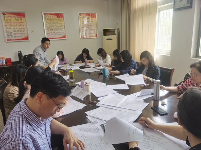 据教工第二党支部书记徐天戍及英语系主任卢杨介绍,此次活动是支部与系部协同联动、共同组织的一次学习实践活动,也是继学院党委于11日组织的党的二十大报告翻译大赛活动的后续拓展。此次活动具有多重意义。一是教师通过阅卷形式,以评促学,有利于巩固强化阅卷教师自身对党的二十大报告的学习成效。二是教师通过学生答题情况的卷面分析,了解学生对于报告精神的领悟程度。阅卷教师们在研讨中发现,学生对于党的二十大报告的英译水平参差不齐,对这一文体词句段的翻译技巧仍有待提升。这些发现将反哺于教学,促进教师在今后语言技能及翻译教学中不断改进。