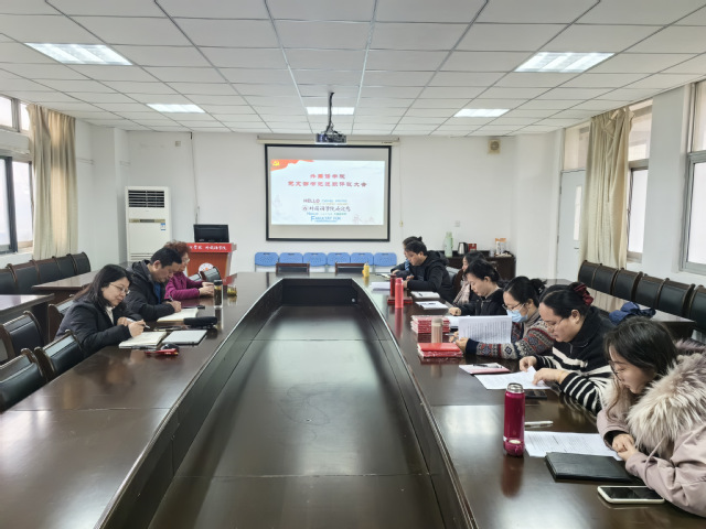 为深入学习贯彻落实习近平新时代中国特色社会主义思想和党的二十大精神,进一步提升基层党建工作水平,根据学校相关要求,1月17日上午,外国语学院党委组织开展2023年度基层党支部书记述职评议大会。院党政领导班子、党委委员、各党支部书记和副书记参加会议,院党委书记吴孔宝主持会议。